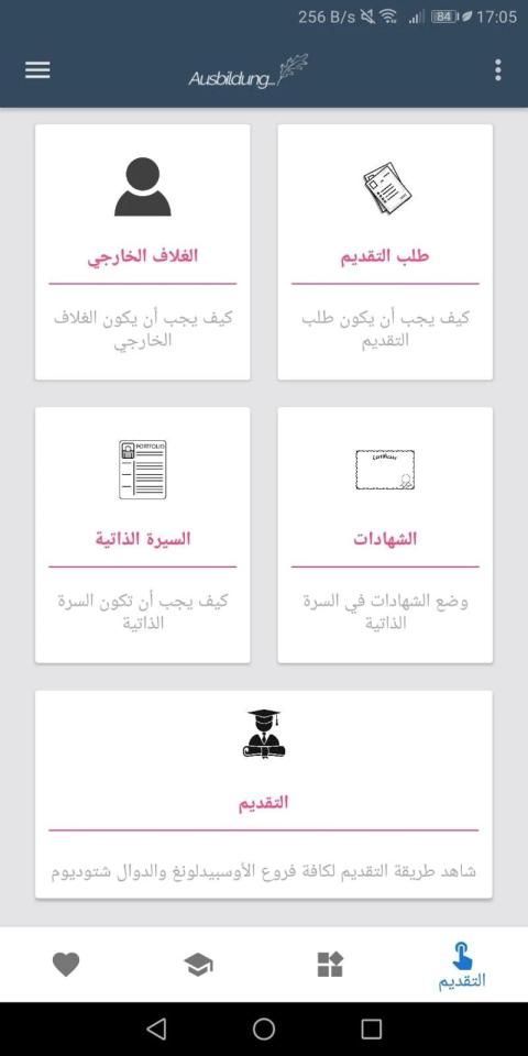 في هذا التطبيق بإمكانكم الحصول على كافة المعلومات المتعلقة بالأوسبيلدونغ والدراسة في ألمانيا