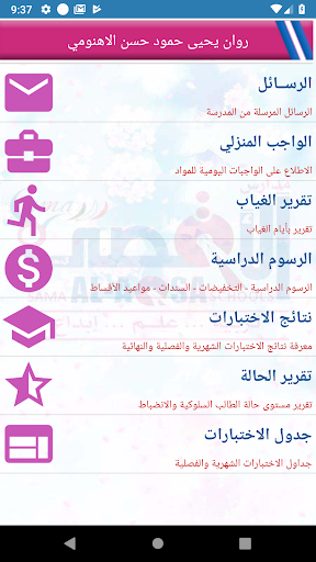 هذا التطبيق يمكن أولياء أمور الطلاب المسجلين في مدارس سما الأقصى الحديثة - اليمن من متابعة ابنائهم من خلال الاطلاع على الواجبات اليومية وكذلك الرسوم الدراسية والتسديدات الخصميات وكذلك النتائج ومعلومات أخرى هامة .. كما يمثل هذا التطبيق حلقة الوصل بين المدرسة وولي الأمر