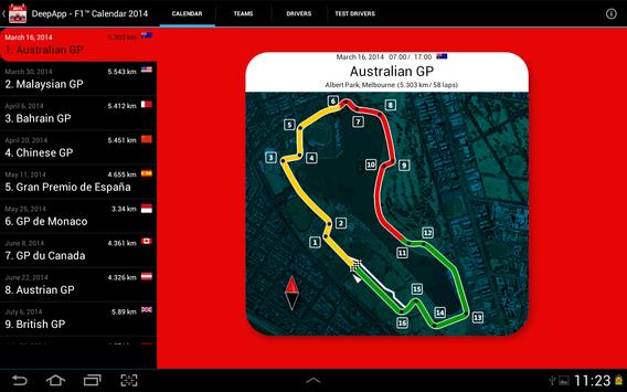 Besides the date, location and distance, it's also includes graphics of all tracks, information about the drivers and team.