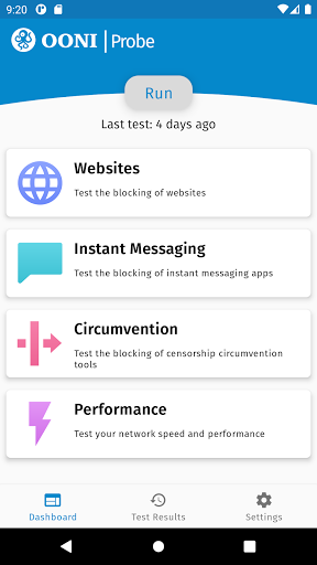 အခမဲ့နှင့် open source software ကိုအခြေခံသည်။ https://gitchub.com/oni တွင် Ooni ဆော့ဝဲလ်စီမံကိန်းများကိုသင်ရှာနိုင်သည်။ ooni စုံစမ်းစစ်ဆေးမှုစစ်ဆေးမှုသည်မည်သို့အလုပ်လုပ်သည်ကိုလေ့လာရန်သိလိုပါသလား။ ပိုမိုလေ့လာပါ။ https://oni.io/nettest/