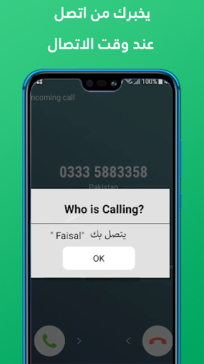 كذالك عند تثبيت نمبربوك كشف الاسم و الرقم وتفعيل خاصية ظهور اسم المتصل فسيظهر لك اسم المتصل تلقائيا عن وقت الاتصال الفعلي