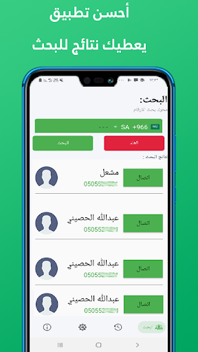 تطبيق نمبربوك كشف الاسم و الرقم مزود بمحرك بحث رائع ! حيث انه يوفر عدد نتائج بحث غير محدوده وايضا لايفرق بين مفتاح الدوله او الصفر