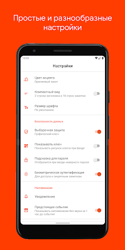 •မှတ်တမ်းအသစ်များအတွက်ကျပန်းအရောင်ပါသောဒေတာအဖွဲ့အစည်းအတွက်ကွဲပြားသောအရောင်များကိုကွဲပြားခြားနားသောအရောင်များ။ •စာရင်းတွင်ပါ 0 င်သောမှတ်စုများ။ နောက်လတွင်အနာဂတ်နှင့်ပြီးစီးခဲ့သည်။ •သတိပေးချက်များကိုပြန်ပြောပြသည် - နေ့တိုင်း, အပတ်တိုင်းသို့မဟုတ်နှစ်စဉ်နှစ်တိုင်းသတိပေးခြင်း - ထပ်ခါတလဲလဲပြုလုပ်သောအချက်များ ဒေတာကာကွယ်မှုနည်းလမ်းများ - ဂရပ်ဖစ် key, pin, polment နှင့် biometric authentication ။ • AEE 256 algorithm ဖြင့်ယုံကြည်စိတ်ချရသောအချက်အလက်စာဝှက်ခြင်း။ •အဆင်ပြေရှာဖွေရေး - စကားလုံးရွေးချယ်ခြင်း, အရောင်များကိုရှာဖွေခြင်း, မိတ္တူတစ်ခုဖန်တီးပါ။ •အခြား applications များမှတဆင့်မှတ်စုများကိုပေးပို့နိုင်စွမ်း။