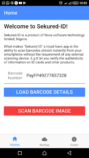 What makes "Sekured-ID" a must-have app is the ability to scan barcodes almost instantly from your smartphone without the requirement of any external scanning device. E.g It let you verify the authenticity of information on ID cards and other products. This is the easiest way to verify details on ID cards and other products using barcode cloud technology. We are the first company in Nigeria to provide a central cloud based system for verifying ID cards details coming from different sectors of the country.