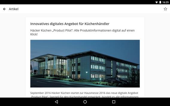 Diese App informiert die Partner, Mitarbeiter und Kunden der Häcker Küchen GmbH & Co. KG über das aktuelle Geschehen und Neuigkeiten des Küchenmöbelherstellers.