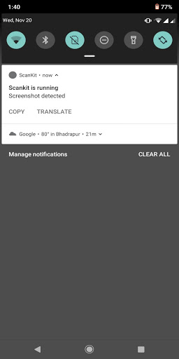 ScanKit helps you to convert photos to texts. It helps to extract, copy and translate texts from photos and screenshots. It can automatically detect screenshots📱 taken and gives you a notification either to copy or translate texts.
