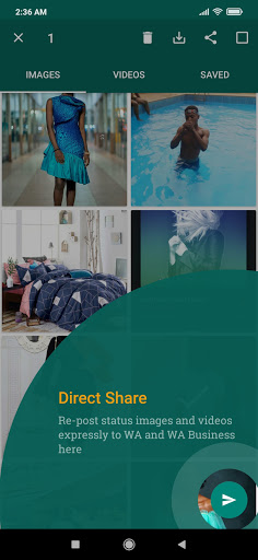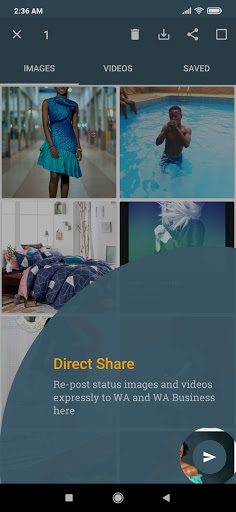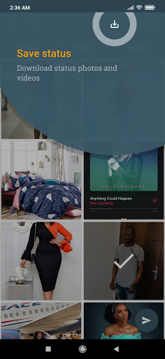 3 ။ကိုအသာပုတ်ပါသို့မဟုတ် Multi-Select image or image or video select လုပ်ပါ။ 4 ။ရွေးချယ်ထားသောပုံများ / ဗွီဒီယိုများကိုသိမ်းဆည်းရန် 'download' 'အိုင်ကွန်ကိုနှိပ်ပါ။ 5 ။ပြီးပြီstatus image / video ကိုသင်၏ပြခန်းသို့သိမ်းဆည်းသည်။