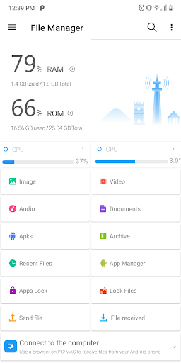 File Manager has built-in RAM cleaner and process manager. With this feature, you can list all running applications, kill a process that draining your battery and RAM to boost up your phone.