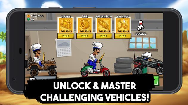 Unlock and upgrade awesome cars found only in this uphill racing game. Explore endless adventure maps until your fuel runs out or you flip your head! Drive through beautiful places like Italy, Jungle, and Battlefield. Enjoy the background music specifically made for each level. Customize your player in hundreds of different combinations. Paint your vehicle to your liking!