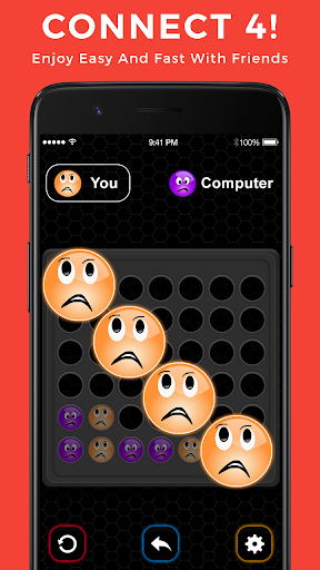 "4 in a Row" is a game classic for two players. Goal of the game is to line up four discs of your color to a horizontal, vertical or diagonal line. Alternating, you and your opponent drop discs into the grid and try to complete a line of four discs against the computer, friends or strangers from all over the world!