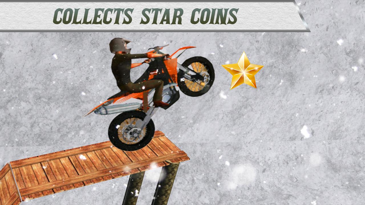 In this stunt bike game different obstacles are placed on every level to make your level tougher! Complete mission to ride your bike and use stunt skill through all course in the specific time. Use your decision power to set some unforgettable landmarks on dirt bike stunt simulator history. Your goal is pick 3 stars in each level and safely reach at your destination. Be the craziest and competitive rider to get all stars and complete missions. If you fall down then you will be res pawned on your last star. Use your mind presence to balance your trail bike and complete tricky stunt bike challenges.