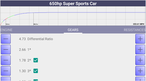 Motorsim သည်သင့်အားနံပါတ်တစ်ခုကိုပြုပြင်ရန်ခွင့်ပြုသည် ရရှိလာတဲ့စွမ်းဆောင်ရည်ဖြစ်လိမ့်မည်ကိုတွက်ချက်ရန်မော်တော်ယာဉ် parameters တွေကို၏။ 1/4 မိုင်လမ်းအပိုင်းအစတစ်ခုတွင်ယာဉ်အနေအထားကိုကိုယ်စားပြုသောအင်ဂျင်ကိုကိုယ်စားပြုသောအင်ဂျင်ကိုကိုယ်စားပြုမှုဖြင့် (နမူနာအားဖြင့်) ကိုယ်စားပြုသောစက်ဆုပ်ရင့်သောအင်ဂျင်ကိုကိုယ်စားပြုမှုဖြင့် (နမူနာအားဖြင့်) ကိုယ်စားပြုမှုဖြင့် (နမူနာများဖြင့်မဟုတ်)) နှင့်အတူ interactive simulator ပါဝင်သည်။ setting ကိုစစ်ဆေးပြီးသည်နှင့်အသုံးပြုသူသည်နောက်ပိုင်းတွင်ဤချိန်ညှိမှုစွမ်းဆောင်ရည်ကိုအခြားသူများနှင့်နှိုင်းယှဉ်နိုင်ရန်အတွက်သရဲတစ်ကောင်ကိုကယ်တင်နိုင်သည်။