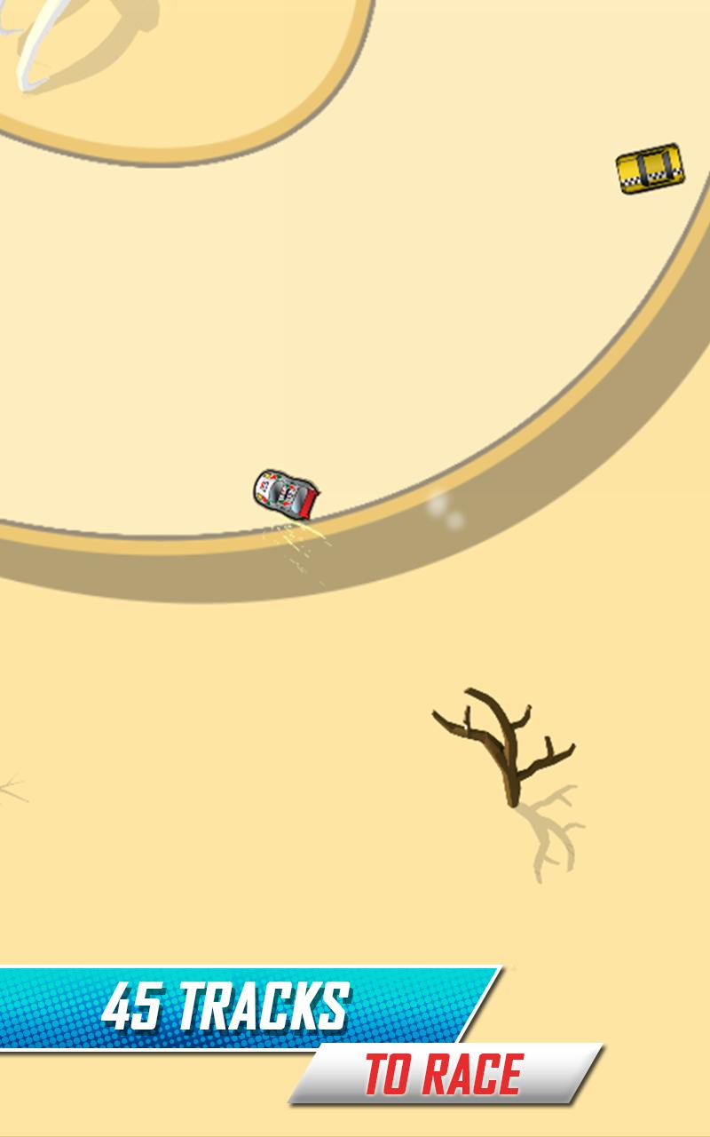 Slide and drift around corners with One Tap Rally, a fun and simple yet hard to master, top down, old school rally car racing game. If you like slot cars games, only off the rails then this is the game for you!