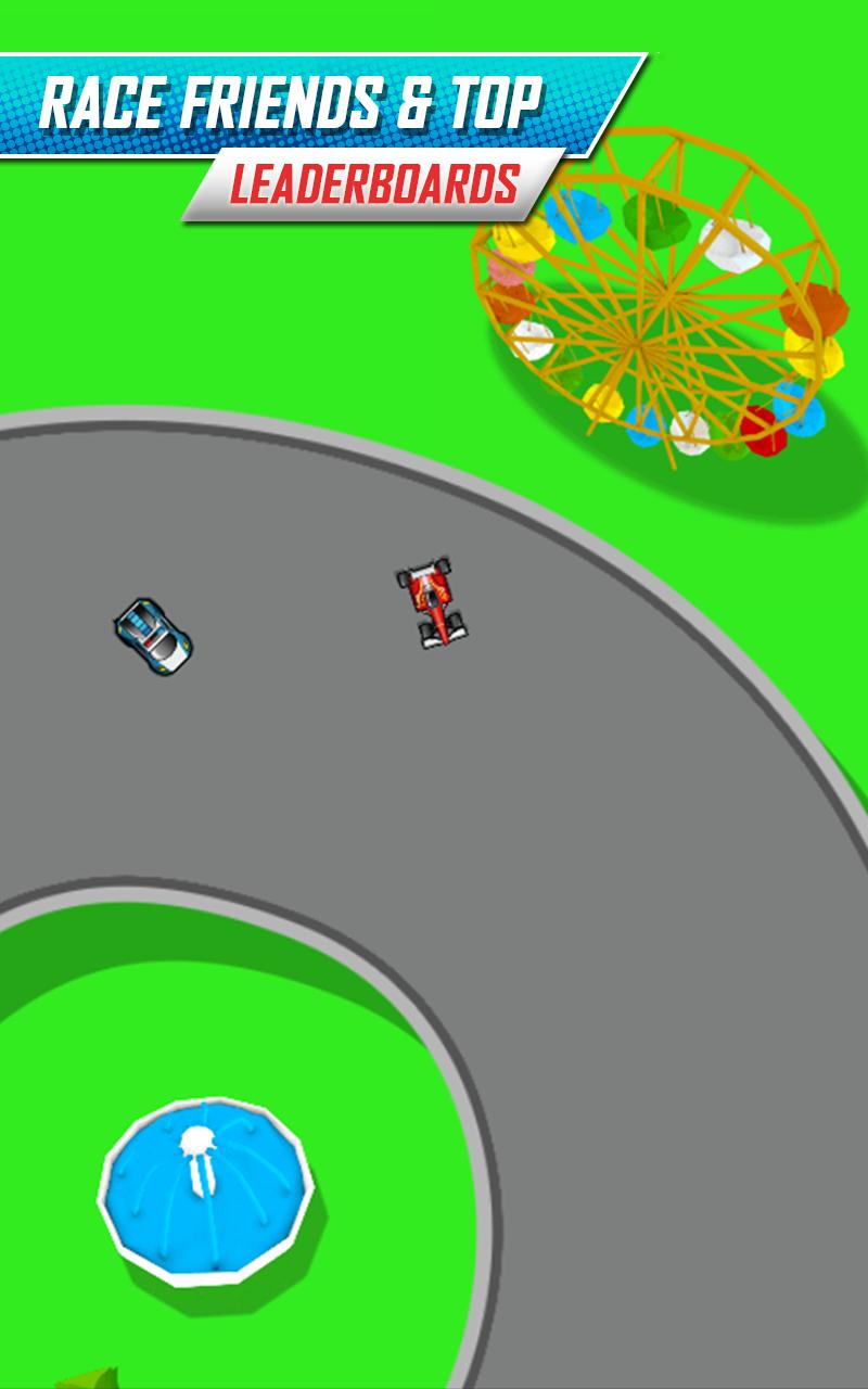 Simple and fun multi-player racing game, like slot car racing game only off the rails!