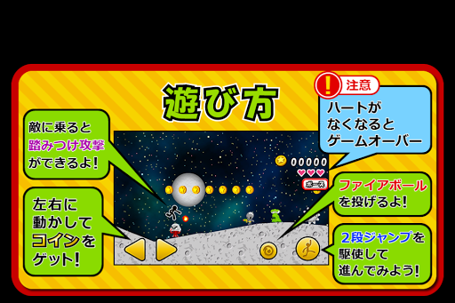 Let's get coins by operating the main character in the fire ball button and jump button and the left and right buttons!