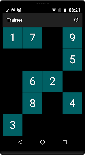 Using this app is simple. You just have to memorize the positions of all the numbers, and press their buttons in the right order, which is 1, 2, 3, ... ,9. If you make even one mistake, it's game over. Have fun!