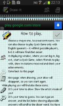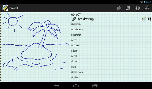 Draw-It is an on-line multiplayer game of drawing and guessing. By turns, the game tells a player to draw something. While this player is drawing, image is shown in real-time to the other players which must guess what it is. When someone gets it, a point is given to the guesser, and other point is given to the drawing player.