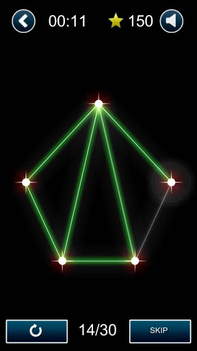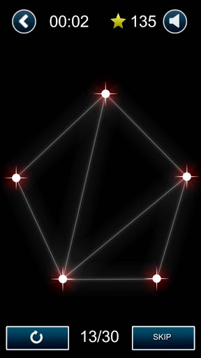 In this puzzle you need to connect the stars, without repeating his way to get one of the many bizarre shapes.