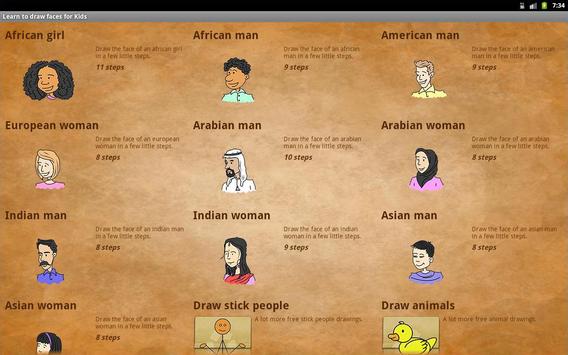 Very simple drawing of faces for children age 5 up to 10 years old. They will enjoy the simple interface with step-by-step instructions. Children only have to slide to see the next instruction.