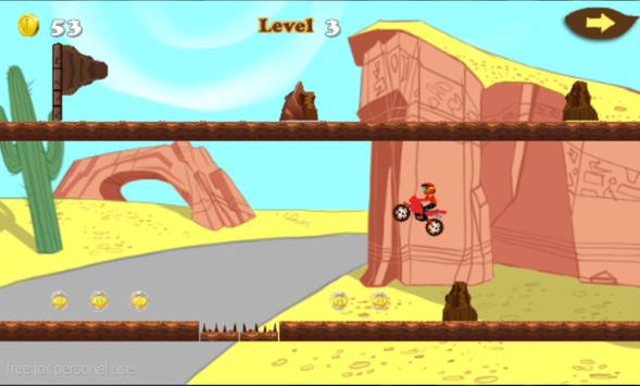 The following features make it one of the best and unique game on the market In this game you have to dodge cars and trucks to go further and make several cycles, rings allow you to buy new running machines. Control are easy and incredible sound.
