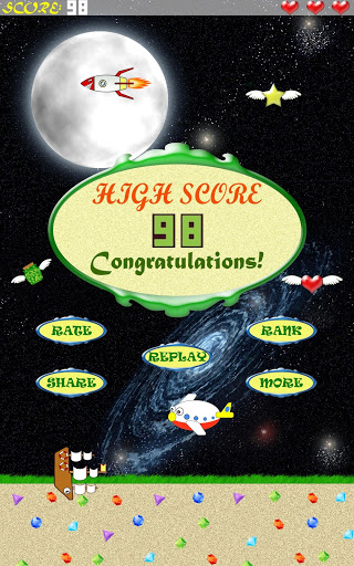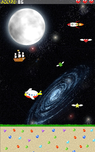 Try to catch the flying stars to get points bonus and catch the flying hearts to recover fairy dust for your fairy ship.