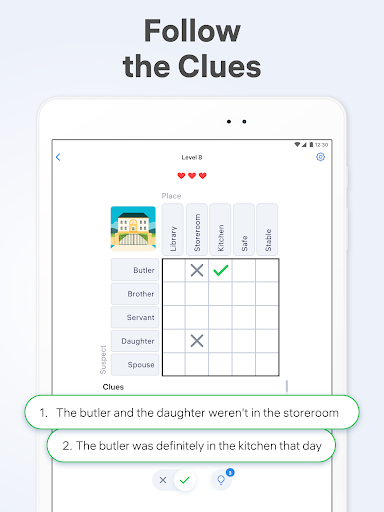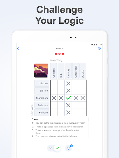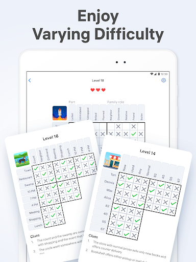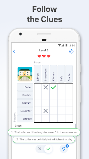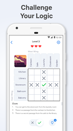 ထင်ရှားသော Sudoku.com နှင့် nonogram.com အခမဲ့ပဟေ games ိဂိမ်းများ၏ developer မှအသစ်စက်စက်ယုတ္တိဗေဒဂိမ်းကိုကြိုဆိုပါသည်။လက်ဝါးကပ်တိုင်ယုတ္တိဗေဒပရိယာယ်ဖြင့်စိတ်လှုပ်ရှားစရာကောင်းသောပုံပြင်များသို့ငုပ်ခြင်း, သင်၏ ဦး နှောက်ကိုစိန်ခေါ်ပါ။စိတ်လှုပ်ရှားဖွယ်အကောင်းဆုံး ဦး နှောက်ဂိမ်းများထဲမှဤအရာကိုနှစ်သက်စေရန်သေချာသည့်အကြောင်းအရာအလိုက်ပုံပြင်များတွင်စုစည်းထားသည့်စမတ်ကျသောနက်နဲသောအရာများအားလုံးကိုဖြေရှင်းရန်ကြိုးစားပါ။အထောက်အကူပြုစုံထောက်ကင်မရာသည်လည်ဆွဲခိုးယူမှုကိုစုံစမ်းစစ်ဆေးခြင်း, လူငယ်စုံတွဲတစ်တွဲအတွက်အားလပ်ရက်စီမံကိန်းရေးဆွဲခြင်းတွင်ပါ 0 င်ခြင်း,သငျသညျကွဲပြားသောကြံစည်မှုနှင့်လှည့်စားဖြေရှင်းနည်းများနှင့်အတူစိတ် - ကွေးပုံပြင်များကိုသင်တွေ့လိမ့်မည်။အကယ်. သင်သည်ယုတ္တိဗေဒပြ problems နာများကိုဖြေရှင်းရန်စိတ်ဝင်စားနေပါကဤ ဦး နှောက်ဂိမ်းကိုကစားရန်နှင့်ပျော်စရာနာရီများကစားပါ။