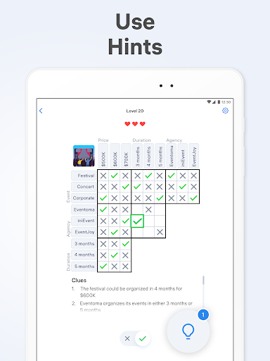 We read all your reviews and always try to make the game better. Please leave us some feedback if you love what we do and feel free to suggest any improvements. Play Logic Puzzles, put your gray matter to work, and have fun!