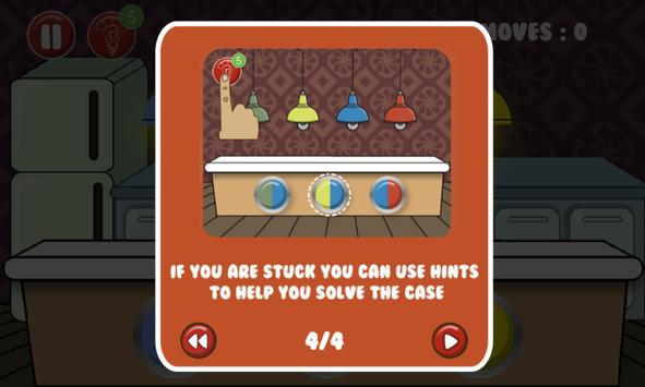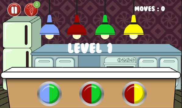 Invites the players to turn on the lights by pressing the switch button where each button has a combination of different colors so the players have to analyze it to clear the level with the minimum number of moves as quickly as possible.