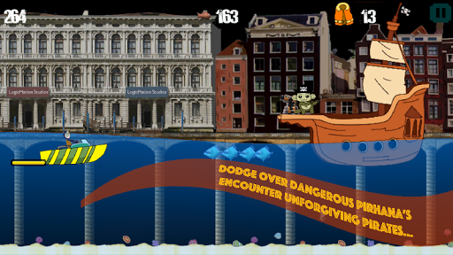 Awaken the real surfer in you.Enhance your experience by unlocking the boats one after the other.Unlock your favourite country from a plethora of destinations-Nepal,Venice,Amazon and many more.Progress past the obstacles to encounter the main villain, The Angry Pirate in his ship. It is going to flex your finger muscles to dodge his missiles and pirana fishes. The game offers a variety of powerups to make your run easier and delightful.