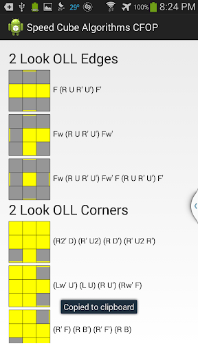 This app simply shows reference diagrams for the 2-Look OLL CFOP (Fridrich) method of solving a Rubik's Cube.