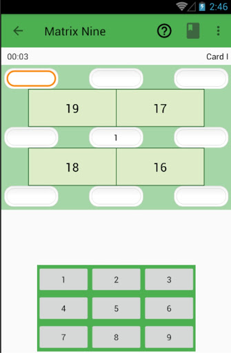 Players must enter only one digit between 1 and 9 (without the constant digit) in the eight fields on the card so that the sum of the numbers for each of the squares is equal to the corresponding Target sum.