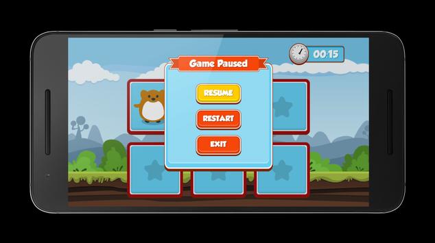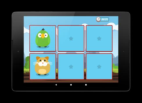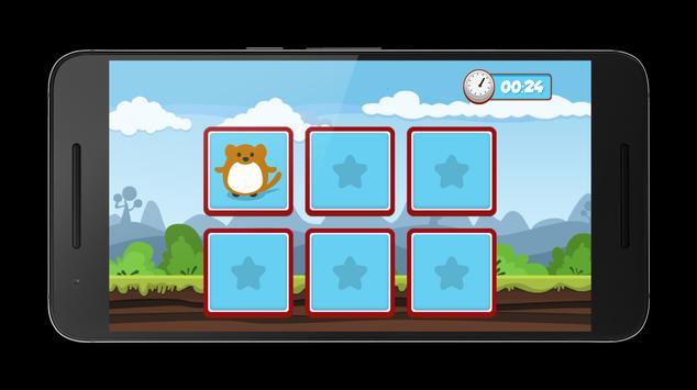 For each level, player is required to tap the square buttons and need to memorize what is behind it in order to match its couple. Players are required to complete a level in minimum finger taps to match all animals.