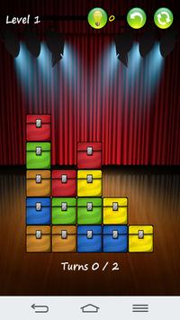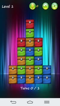 Your aim is to clear all the boxes by bringing them together. You can move, drop and swap the boxes. Three or more boxes of the same kind in a horizontal or vertical line will disappear. Each level has a limited amount of turns!