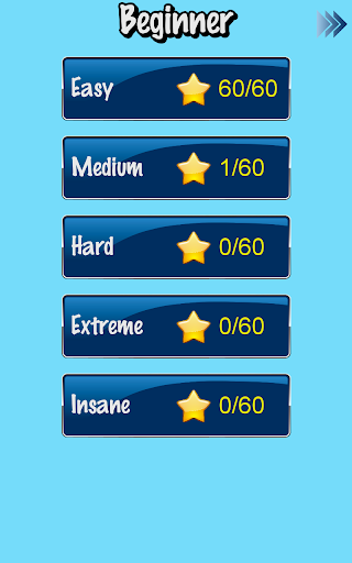 This fill one line game includes 1500 puzzles, 5 expertise levels, plus 5 difficult levels for each expertise level.