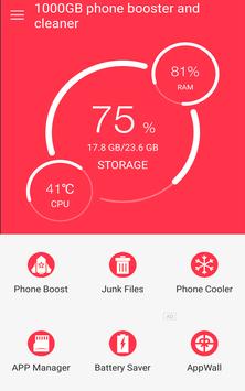 with 1000gb ram cleaner and booster you get a phone speedly cooler and batterie saver, optimized also you can get app manager and app lock with shema to secure application, And you can save storage with Storage saver by moving app to SD card,