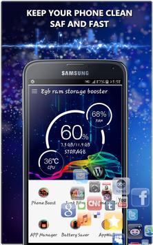 The World's Most Trusted Android self storage cleaner, 8GB RAM, booster, and trash-cleaning app, 8gb ram storage, & 8GB RAM Speed test Booster is a FREE app that can help clean redundant apps and files, free up storage space, speed test, clean up your RAM, and speed up your Android device.