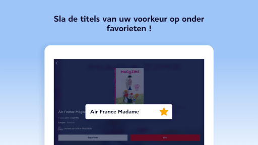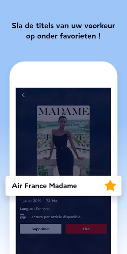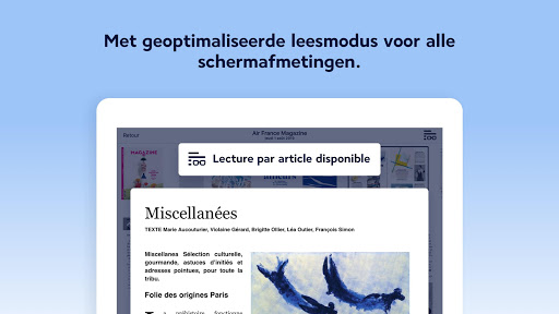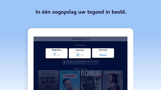 Zin om te lezen en weg te dromen? Onze tijdschriften Air France en Air France Madame zijn op elk gewenst moment kosteloos beschikbaar, ook als u geen vlucht heeft binnen 30 uur.