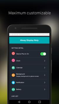 Inspired by Glance for Nokia Lumia (Windows Phone) devices, It is to provide users with information about, time, date, notifications screen and more and all without having to touch the phone. Just by looking at it.
