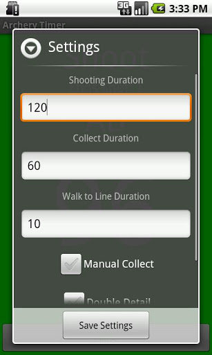 Schietduur: het aantal seconden waarvoor u wilt schieten Verzamel duur: als het gebruik van een getimed collect-sequentie ('Manual Collect' Unticked), is dit het aantal seconden toegestaan om je pijlen te verzamelen