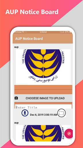 In this app the users can easily download the notifications provided by the university officials . Students will no longer go to notice board, administration again and again to annoy them . Generally this application is for the students of AUP under the title "Aup Notice Board" . The purpose of this application is to provide quick information about the results and different kinds of notifications.