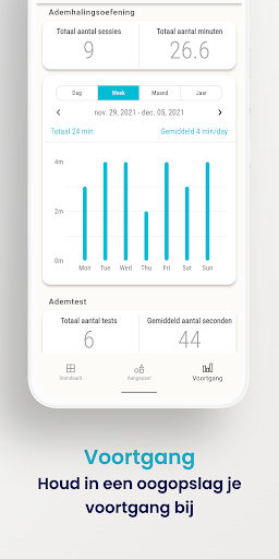 - Ademtest om te testen en bij te houden hoe lang je je adem in kunt houden