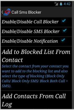 This is a Call blocker & Message (SMS) blocker application. You can block calls and sms for each and every contacts. Using this application block unwanted calls. Now no need to ask your service provider not to send you unwanted messages. Just block the number from where they are sending sms and calling you.