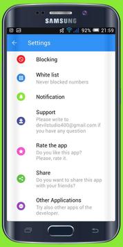 If you don't want to block calls from a certain number, adding it to the “Whitelist” is sufficient. Callers from this list will never be rejected by the blocker.