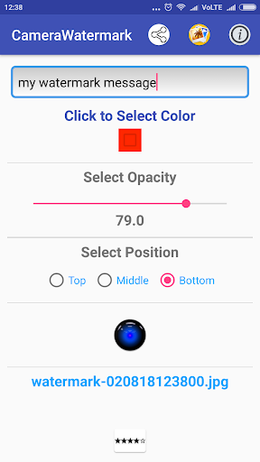 4. This app provide options to select color, opacity & position of the watermarking text.