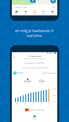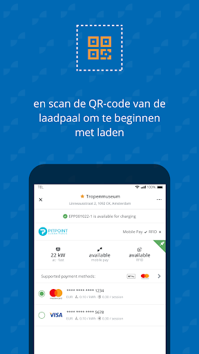 Navigeer eenvoudig naar een laadpunt, start met laden en betaal automatisch na je laadsessie. Bekijk beschikbaarheid van laadpunten, bijbehorende laadtarieven, laadvoortgang van je laadsessie en andere relevante informatie met slechts een paar klikken.