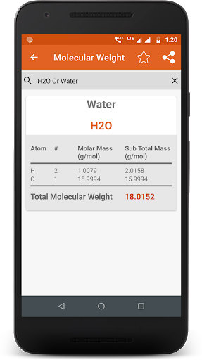 Here it contains chemical formula and its total molecular weight. Details contains Chemical element, number of atoms, molar mass, total mass, and total molecular weight.