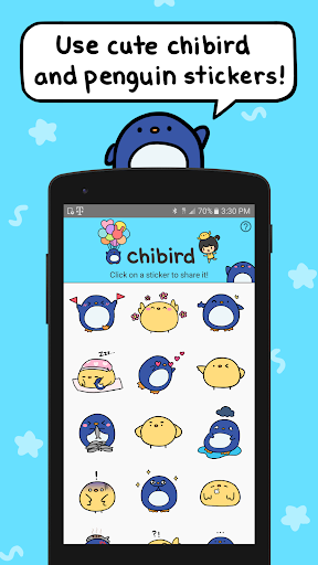 There are three ways to send your favorite Chibird stickers to your friends, and a tutorial pops up the first time you open the Chibird Sticker app. You can click the ? in the top right corner to open it up again.