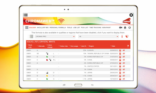 Dit eenvoudig te gebruiken, maar uitgebreide cloud-gebaseerde tool helpt CROMAX-bodyshops te optimaliseren kwaliteit en productiviteit.Het versnelt de ophalen van kleurenformule en maakt het productmanagement gemakkelijker en het leveren van directe kleur-, product- en software-updates.De Chromaweb-app is een integraal onderdeel van het chromaconnect-systeem en de intuïtieve interface, maakt het een echt uitgebreid en 'must-have'-tool.