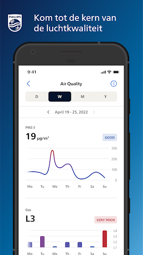 De app houdt alle vervuilende stoffen binnen en buiten bij en past de prestaties van uw apparaat automatisch aan, zodat u dat niet zelf hoeft te doen. Met Air blijft u in controle, thuis of onderweg, met een afstandsbediening en meldingen over al uw luchtzorgen, inclusief vervuilende stoffen, allergieën en gas. En door op de hoogte te blijven met inzichten in uw gegevens over de luchtkwaliteit van het verleden tot het heden hebt u de volledige controle over het inademen van de schone, gezonde lucht die u verdient.