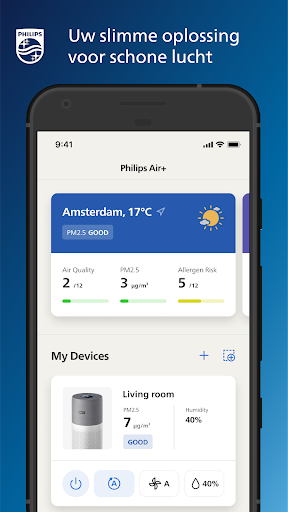 Samen met uw aangesloten Philips Air-apparaat biedt Air een slimme ervaring die ervoor zorgt dat u schone en gezonde lucht inademt.